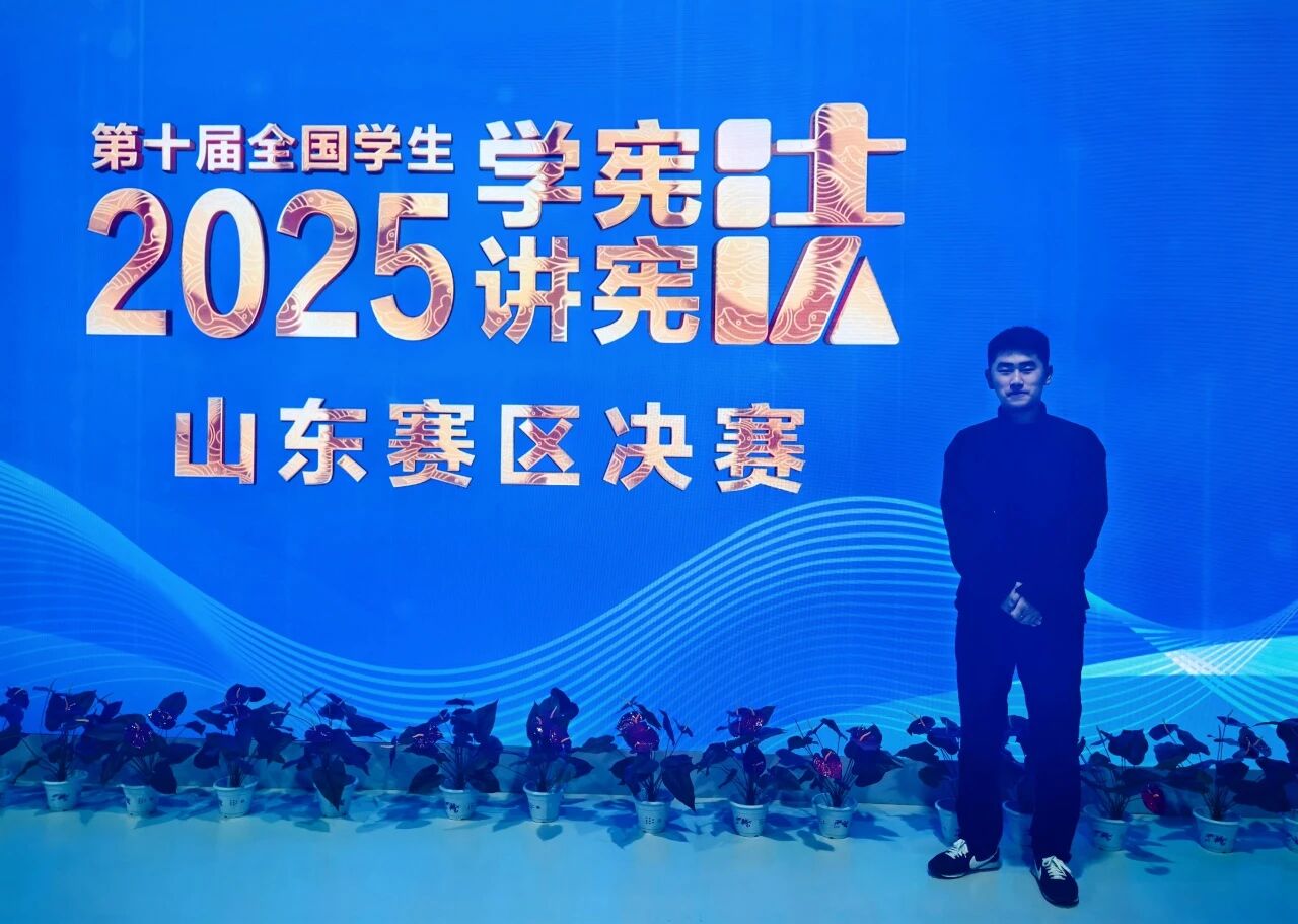 备赛期间,王浩宇同学克服课业压力,利用课余时间积极查阅资料、研读宪法条文、系统梳理法律知识体系。他通过反复演练与模拟答题,不断打磨自己的理解与表达,精益求精,力求在每个环节都做到尽善尽美,不忽视任何一个细微之处。此次竞赛不仅是一场知识的比拼,更是一堂生动的法治教育课。王浩宇同学比赛完讲到:“通过备赛和参赛,我们对宪法作为国家根本大法的地位有了更深刻的认识,也明白了宪法与每个人的学习生活息息相关。作为新时代青年,我们应当自觉成为宪法的忠实崇尚者、自觉遵守者和坚定捍卫者。”