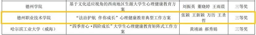 在心理健康教育典型工作方案评选中,我校荣获三等奖一项。
