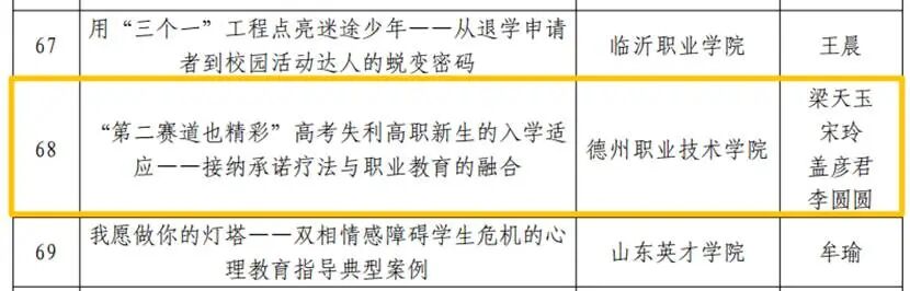 我校撰写的《“第二赛道也精彩”——高考失利高职新生的入学适应:接纳承诺疗法与职业教育的融合》案例,被评为“全省学生心理健康教育指导典型案例”。