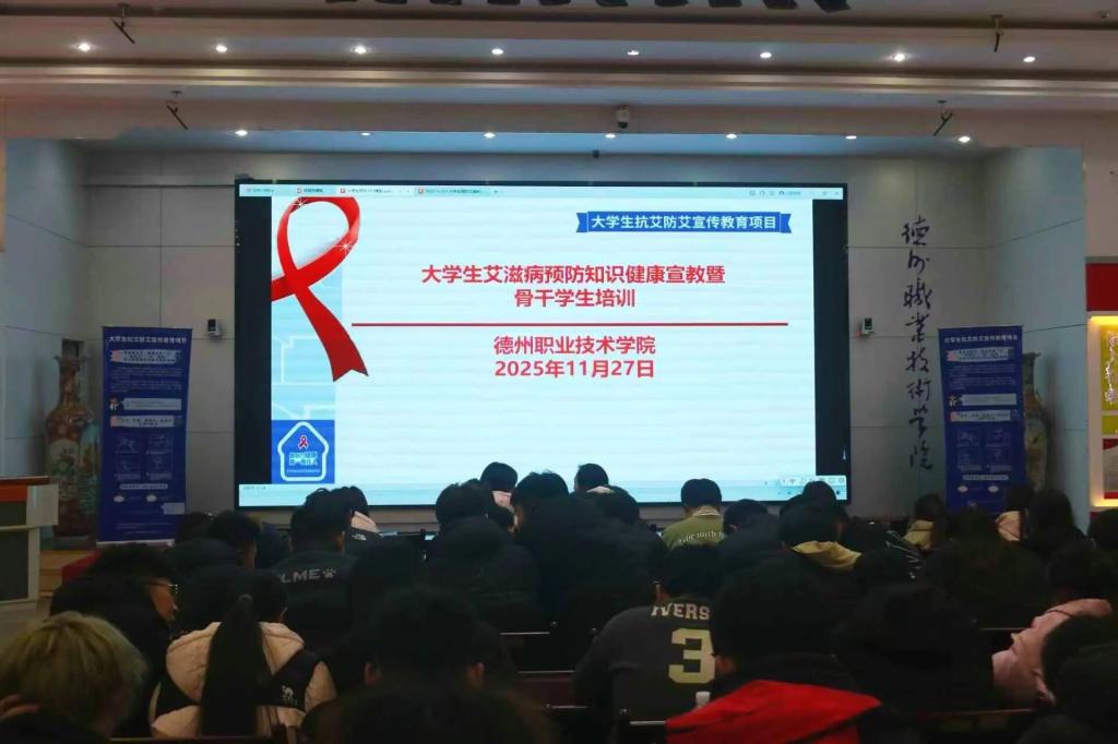近日,我校于思齐楼多功能厅成功举办艾滋病预防知识宣教活动暨学生骨干培训会。活动由学生处与校医院联合主办,得到德州市广播电视台、疾控中心及天衢新区教体卫事业发展部等单位的支持,共百余名学生骨干参加培训。
