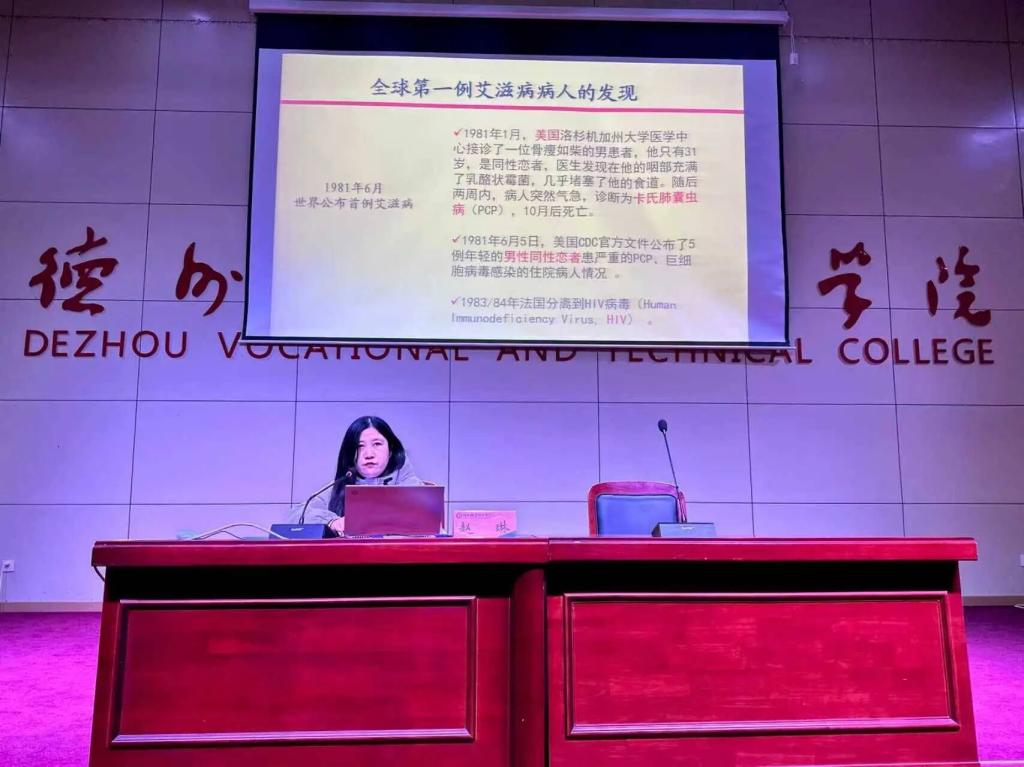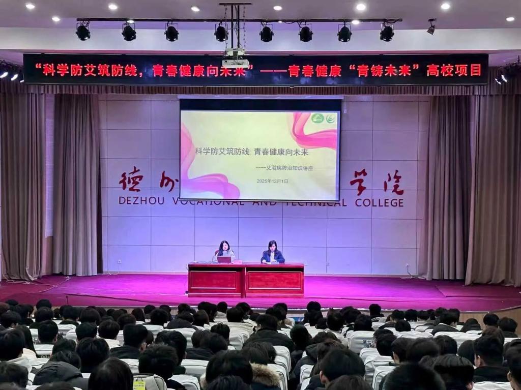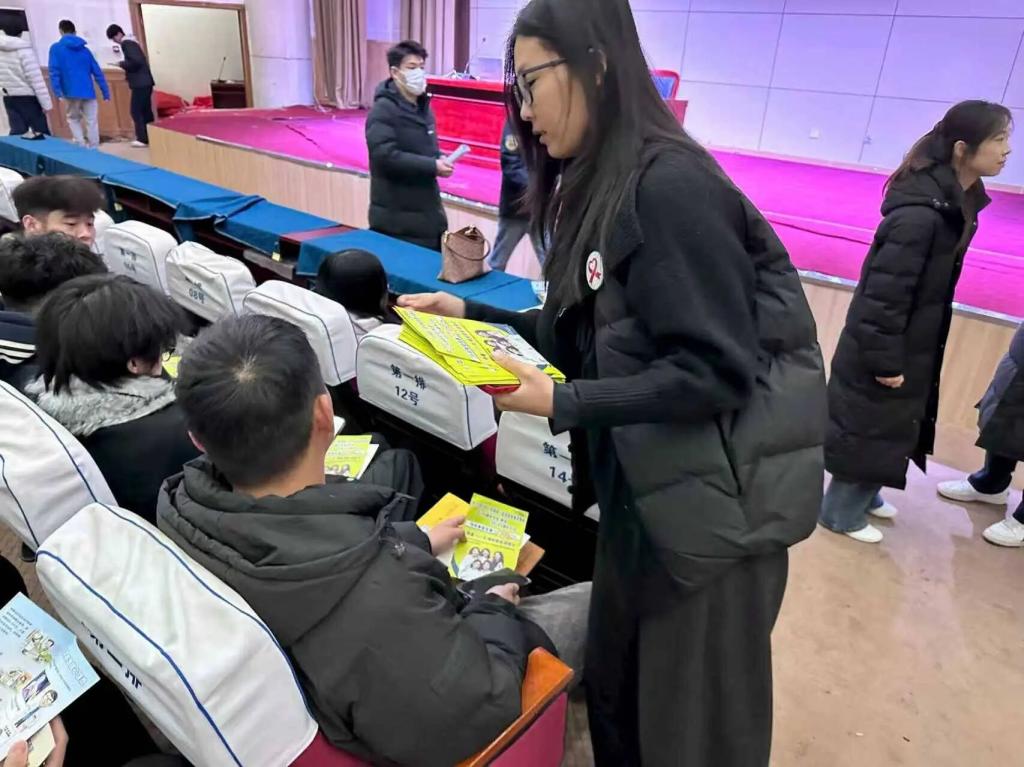12月1日,邀请德城区疾控中心赵琳科长来校为500多名学生作“艾滋病的流行与控制”专题讲座。赵科长结合多年疾控工作经验,以图文并茂的形式系统讲解了HIV致病原理、典型症状及传播特点。针对校园生活场景,重点强调拒绝不安全性行为、正确使用防护用品、远离毒品等核心防护措施,提醒学生科学预防。讲座现场,疾控中心专家为学生发放宣传手册,并对学生提问逐一解答,有效消除认知误区,切实提升学生防艾意识。
