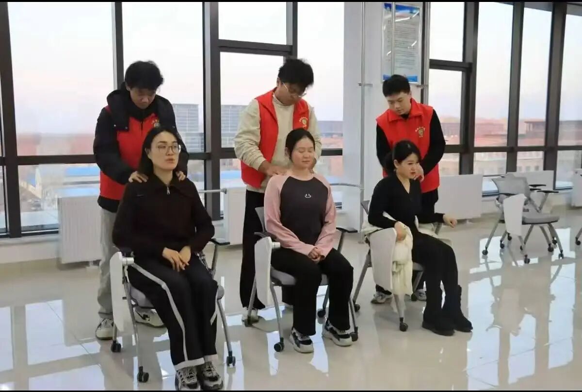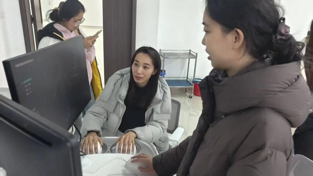 沙龙结束后,老师们还体验了中医健康项目,通过中医经络诊断仪,进行体质检测。健康管理学院康复专业薛彤瑶老师现场指导,帮助老师们解读报告、传授日常调理方法。学生志愿者还给老师们提供了一些简单实用的保健技巧,气氛温馨融洽。