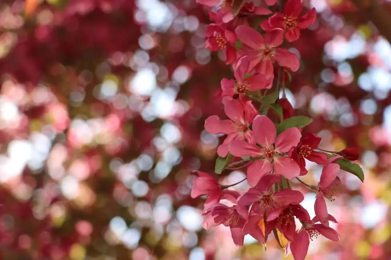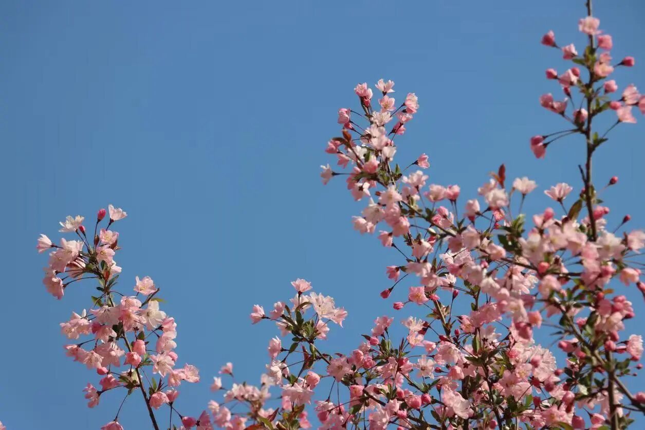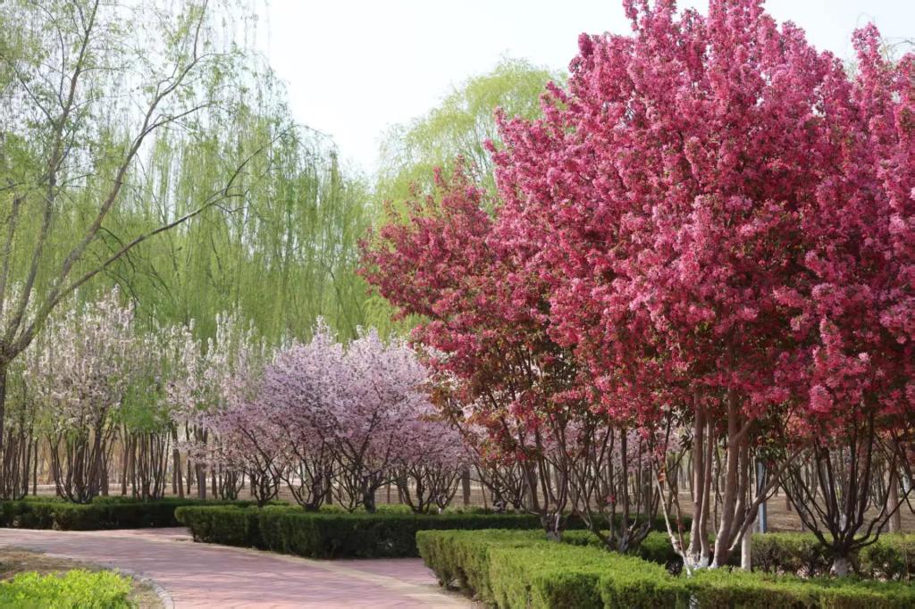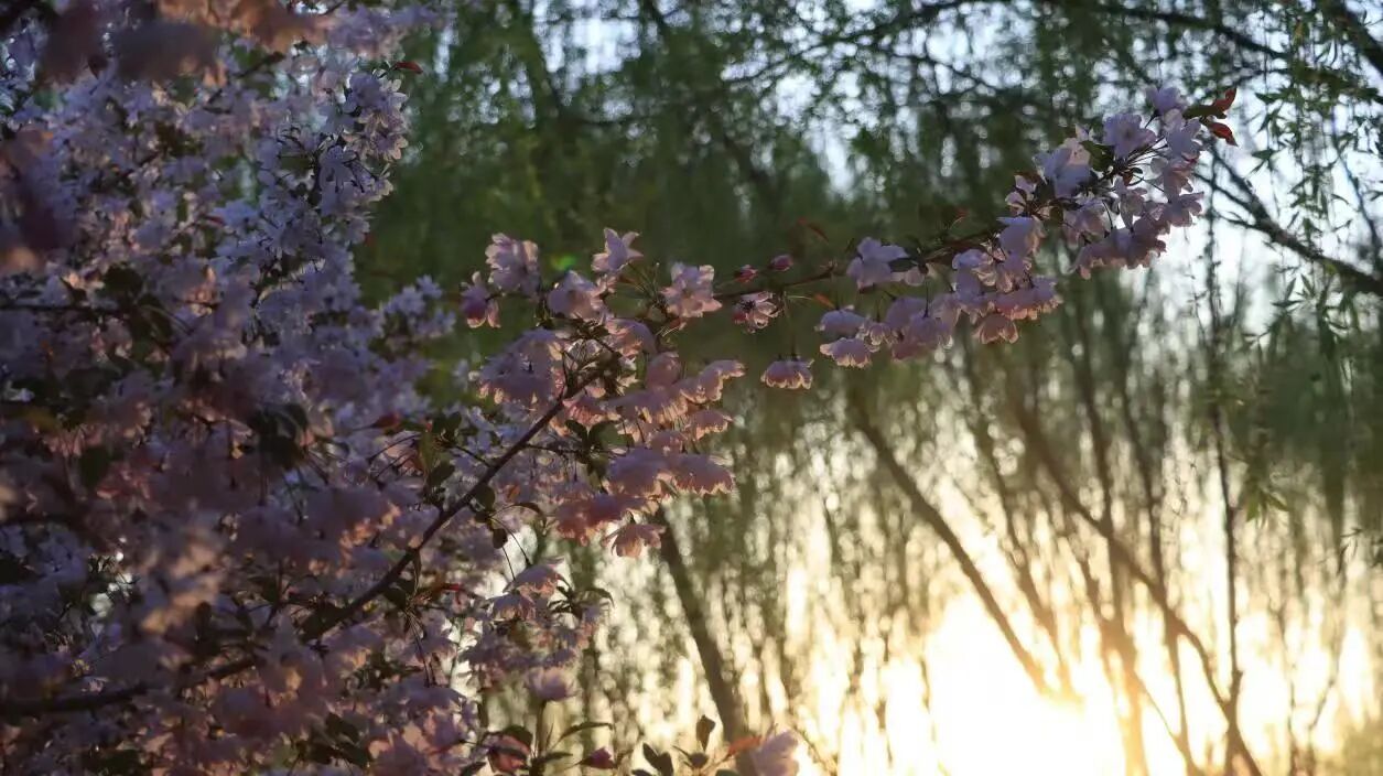 有人用镜头捕捉碧桃与宿舍楼的错位吻影;晨读少女的发梢挂着榆叶梅的香篆。