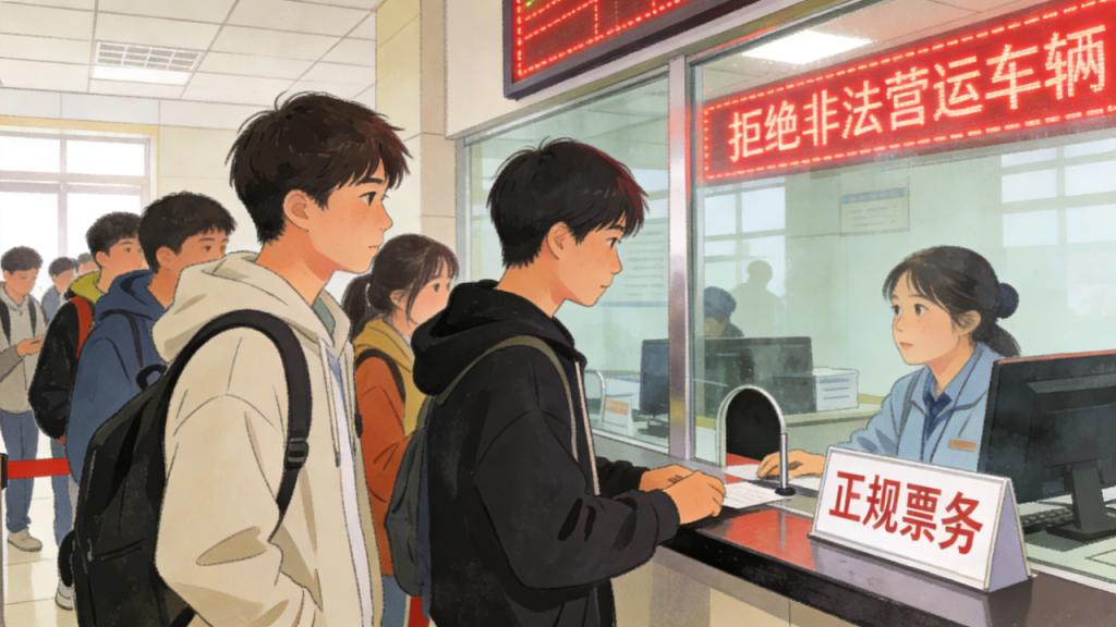 严格遵守交通规范,选择正规运营的交通工具,拒绝乘坐非法营运车辆,不搭乘超员、超载及站外揽客车辆。