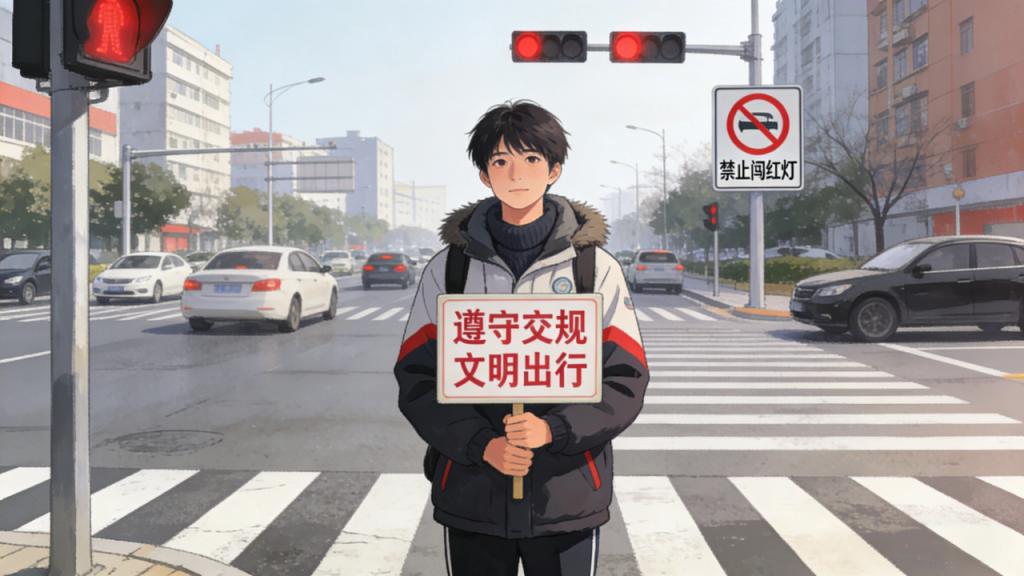 遵守交通法规,过马路走人行横道、不闯红灯,不乘坐无牌无证、超载超员的交通工具,骑行电动车、自行车时遵守相关规定,佩戴好安全防护装备。