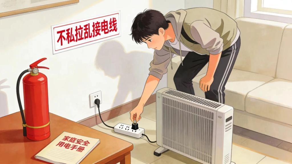 注意用火、用电、用气安全,不玩火、不私拉乱接电线,不违规使用大功率电器;熟悉家庭火灾逃生路线,掌握基本的防火、灭火和逃生技能。