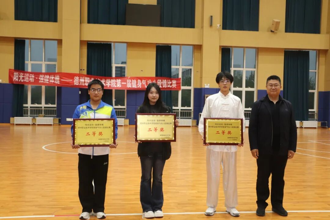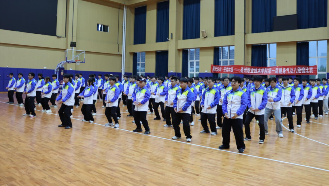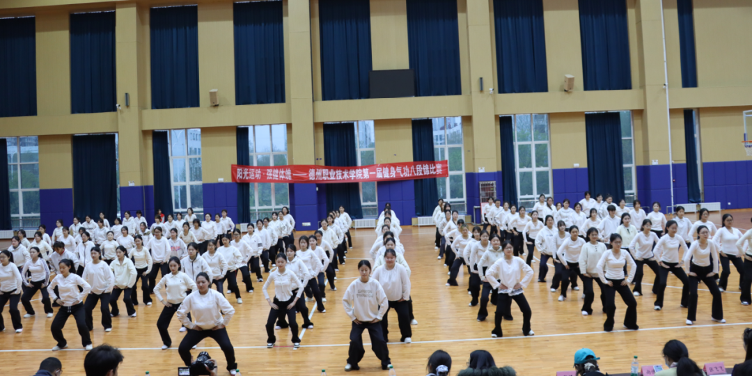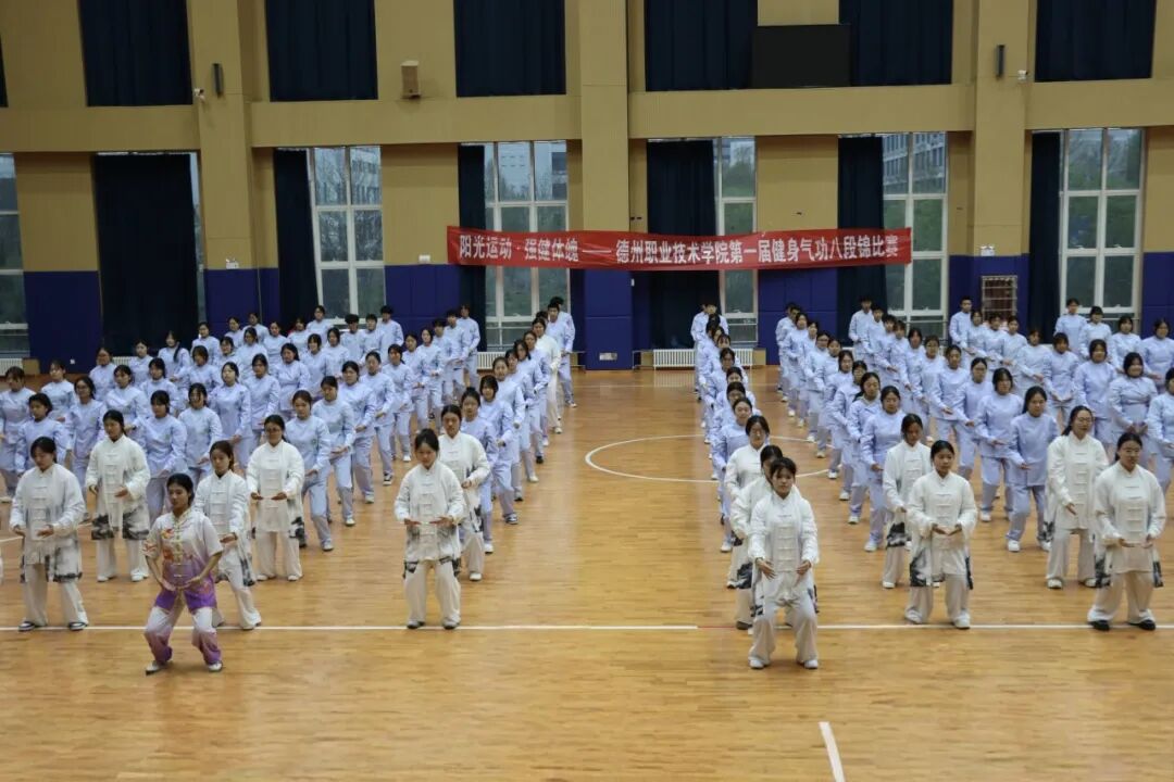 为深入推进阳光体育活动,践行“阳光运动,强健体魄”理念,传承中华优秀传统体育文化。4月8日,德州职业技术学院首届健身气功八段锦比赛在弘毅楼顺利举行。本次大赛由校学生处、团委主办,健康管理学院承办,校党委委员、副院长刘宏杰、学生处处长郭吉海、团委书记王国霞、健康管理学院党总支书记范轶出席活动,与现场师生共同见证这场传承中华传统养生文化的特色盛宴。