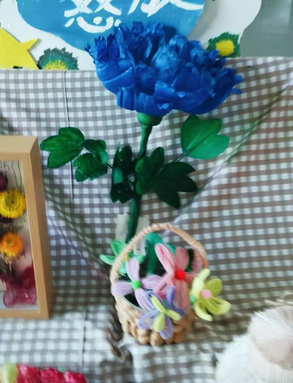 这朵蓝色大花,是变废为宝的绮丽成果。创作者以匠心将废弃材料重组,让平凡之物幻化为娇艳花朵。它如心灵映射,即便身处庸常,也能借创意打破禁锢。它提醒我们,生活可经雕琢重焕光彩,为心灵寻得盛放空间。